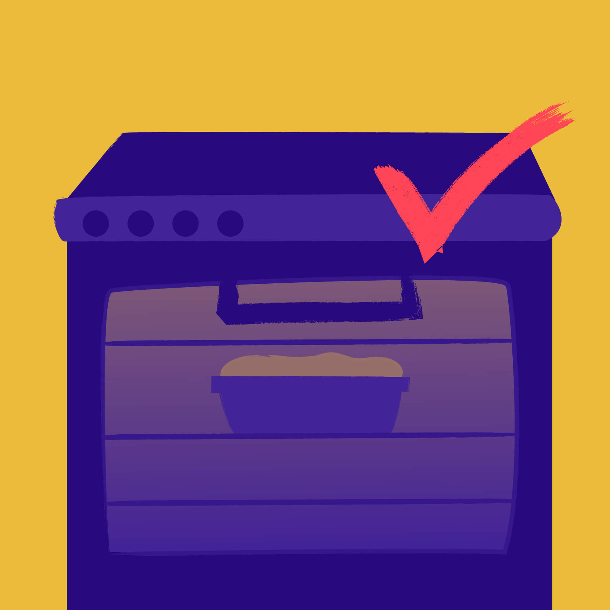 Il est si tentant d’ouvrir le four et de contempler ce que l’on vient de cuisiner. Rien ne vaut la satisfaction de voir un gâteau lever après l’avoir préparé avec amour. Cependant, nos espoirs d’avoir un magnifique dessert pourraient être anéantis, ainsi que notre gâteau, si nous ne contrôlons pas notre curiosité! Ainsi, pendant la première moitié de la cuisson de ton dessert, laisse la porte du four fermée. En effet, ouvrir la porte au début du processus de cuisson pourrait créer un changement de température important dans le four, provoquant l’effondrement de la pâte à gâteau encore fragile à ce stade. Utilise plutôt la lumière du four pour admirer ton œuvre!