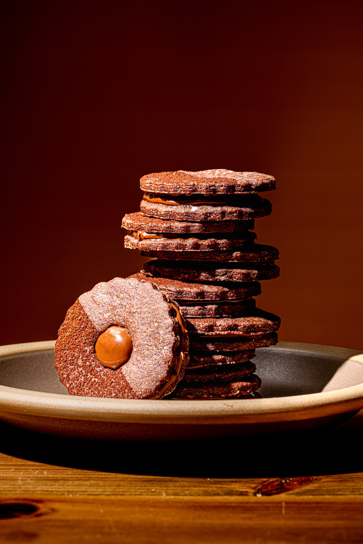 Home Recipes Desserts Chocolate & Nutella Linzer Cookies (Fudgeeo Style) Close Avantages exclusifs Deviens membre BPT+ pour ajouter une recette en favori et profiter d'une foule d'autres avantages! Deviens membre BPT+ Chocolate & Nutella Linzer Cookies (Fudgeeo Style) Quick access Ingredients Preparation Comments Ingredients Preparation Comments By: Hubert Cormier, Ph.D., docteur en nutrition Preparation 30 min Cooking 10-12 min Refrigeration 2h30 Freezing 0 min 20 cookies Worth the effort (moderate) Quick access Ingredients Preparation Comments Ingredients Preparation Comments Dietary restrictions Categories Desserts Like it? Share it! Chocolate & Nutella Linzer Cookies (Fudgeeo Style) Try Our Chocolate & Nutella Linzer Cookies! These Nutella Linzer cookies are delicious, decadent, and easy to prepare. Besides, they are so beautiful that they will surely make you proud of your culinary skills! Get ready for everyone to ask what your secret recipe is! How to make beautiful cookies When rolling out your cookie dough, sprinkle a good amount of flour on it. Otherwise, if there is not enough flour, the dough will stick to your work surface, rolling pin, and cookie cutters. SIMPLY DELICIOUS: BPT has a ton of decadent cookie recipes: New York-Style Chocolate Chip Cookies Dark Chocolate Chip Cookies Chocolate and Coffee Thumbprint Cookies Meringue and Grenoble Walnuts cookies Funfetti Cookies Like it? Share it! Bonà savoir The secret behind a beautiful dough If your dough becomes sticky and difficult to manipulate, refrigerate it again a few minutes. The goal is to always keep it cold. Otherwise, the butter might start to melt, which makes the dough harder to work with. A cold dough is however tougher, so you might have to use more strength! Ingredients Switch to cook mode Metric Imperial Nutella cookies All-purpose flour - 1 ¾ cup 430 mL To discover! Almond flour - ½ cup 125 mL To discover! Cocoa powder - ½ cup 125 mL To discover! Cinnamon - 1 teaspoon 5 mL To discover! Kosher salt - ½ teaspoon 2.5 mL To discover! Unsalted butter, at room temperature - ½ pound 227 g To discover! Sugar - ⅔ cup 160 mL To discover! Egg - 1 1 To discover! Vanilla extract - 1 teaspoon 5 mL To discover! Hazelnut and cocoa spread (Nutella) - ¾ cup 180 mL To discover! Cocoa powder - 2 tablespoons 30 mL To discover! Preparation Switch to cook mode Nutella cookies Step 1 In a bowl, mix together the flour, almond flour, cocoa powder, cinnamon, and salt. Step 2 In a second bowl, using a hand mixer, whip the butter and sugar for about 2 minutes or until smooth. Add the egg and vanilla extract. Mix well. Step 3 Incorporate the dry ingrdients to the butter mix. Separate the dough into 2 circles. Cover each piece with a plastic wrap and refrigerate 2 hours. Step 4 On a floured work surface, roll out the first piece of dough until it is about 3 to 5 mm (1/8 to ¼ inch) thick. Using a fluted or round cookie cutter, cut as much cookies as possible. Step 5 Using a smaller cookie cutter, cut out a shape in the middle of each cookie. Then, place the cookies on a baking sheet and refrigerate at least 30 minutes. Repeat with the second piece of dough. Step 6 Preheat the oven to 180 °C (350 °F) and line 2 baking sheets with parchment paper. Step 7 Bake the cookies 10 to 12 minutes, until the sides are golden. Let cool completely. Step 8 Garnish each cookie base with a teaspoon of hazelnut spread and sprinkle cocoa powder on the top parts. Assemble the cookies. Like it? Share it!
