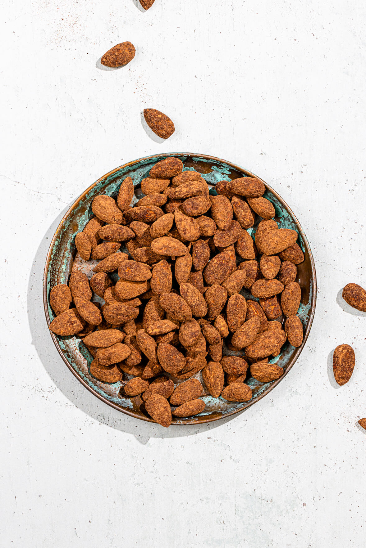 Home Recipes 5 ingredients or less Cocoa Dusted Almonds Close Avantages exclusifs Deviens membre BPT+ pour ajouter une recette en favori et profiter d'une foule d'autres avantages! Deviens membre BPT+ Cocoa Dusted Almonds Quick access Ingredients Preparation Comments Ingredients Preparation Comments By: Pamela Rousseau, Dt.P., Nutritionniste Preparation 5 min Cooking - Refrigeration 0 min Freezing 0 min 10 servings Piece of cake (easy) Quick access Ingredients Preparation Comments Ingredients Preparation Comments Dietary restrictions Categories Snack foods Like it? Share it! Cocoa Dusted Almonds A Healthy Version of Chocolate Covered Almonds? Chocolate covered almonds are so delicious, we could easily eat the whole bag! Everyone wants to make these chocolate coated almonds, but while the shop-bought versions are definitely tasty, homemade cocoa dusted almonds are a much healthier alternative! Indeed, their nutritional values are more interesting. In fact, they are much less caloric and sweet than regular chocolate almonds. Make your own mix! As a snack or dessert, cocoa dusted almonds are a little guilty pleasure! Make your own mix with nuts, dried fruits, and almonds for a boost of energy and protein! SIMPLY DELICIOUS: Got leftover almonds (or chocolate almonds… we won’t say no to a chocolate touch!) and feel like cooking? Why not try these tasty orange and almond scones? Like it? Share it! Bonà savoir What's a good almond portion? In the United States and Canada, a normal almond serving contains about 23 almonds. For a filling snack, eat fresh fruits or vegetables as well. This way you won’t be hungry until your next meal! Ingredients Switch to cook mode Metric Imperial Cocoa dusted almonds Maple syrup - 2 teaspoons 10 mL To discover! Almond extract - ½ teaspoon 2.5 mL To discover! Natural whole almonds - 2 cups 500 mL To discover! Cocoa powder - 2 tablespoons 30 mL To discover! Preparation Switch to cook mode Cocoa dusted almonds Step 1 Heat the maple syrup and almond extract in the microwave for 10 seconds. Step 2 Quickly add the hot syrup mix to the almonds. Step 3 Then, add the cocoa powder and mix until the almonds are completely coated. Step 4 Finally, move the almonds around in a sieve to remove the excess cocoa powder. Like it? Share it!