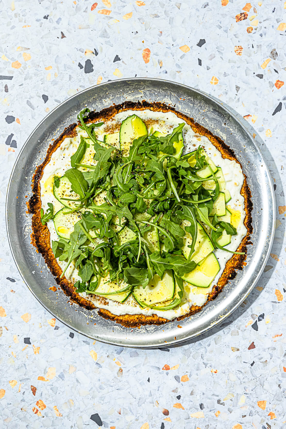 Home Recipes Main dishes Homemade Healthy Pizza Close Avantages exclusifs Deviens membre BPT+ pour ajouter une recette en favori et profiter d'une foule d'autres avantages! Deviens membre BPT+ Sponsored by Éconofitness Homemade Healthy Pizza Quick access Ingredients Preparation Comments Ingredients Preparation Comments By: Hubert Cormier, Ph.D., docteur en nutrition Preparation 20 min Cooking 40 min Refrigeration 0 min Freezing 0 min 1 individual pizza Worth the effort (moderate) Quick access Ingredients Preparation Comments Ingredients Preparation Comments Dietary restrictions Categories Main dishes Like it? Share it! Homemade Healthy Pizza Here Is the Best Healthy Pizza Recipe! Do you love pizza so much you could eat some everyday? Well you’d have to eat a very healthy pizza to do so! Just wait until you try this homemade one… It’s addictive! Plus, you can change the toppings and create your dream pizza. Besides, a quick sweet potato pizza dough is a much healthier option than the traditional crust. Sceptic? Try it and you’ll see! It’s much more nutritious (and tasty)! SIMPLY DELICIOUS: Prepare some side dishes as well! Avocado fries, tomato salad, Brussels sprout salad, Greek salad, fried pickles… all great options! Like it? Share it! Bonà savoir For an extra crispy crust Feel like your homemade sweet potato crust is not crispy enough? Increase the cooking time to reach desired doneness! You could also finish cooking on broil for a few minutes. However, be careful with this cooking method! Your food may burn easily if you don’t watch it, so try not to get distracted! Healthy pizza Switch to cook mode Metric Imperial Homemade sweet potato pizza dough Sweet potato, peeled and grated - 3 cups 750 mL To discover! Oat flakes - ⅔ cup 160 mL To discover! Large egg - 1 1 To discover! Garlic powder - 1 teaspoon 5 mL To discover! Dried oregano - 1 teaspoon 5 mL To discover! Vegetable oil - 2 teaspoons 10 mL To discover! Toppings Light ricotta cheese - ½ cup 125 mL To discover! Garlic, chopped - 1 teaspoon 5 mL To discover! Zucchini, finely sliced lengthwise - 1 1 To discover! Vegetable oil - 1 teaspoon 5 mL To discover! Arugula - 1 cup 250 mL To discover! Salt and pepper - To taste To taste To discover! Preparation Switch to cook mode Healthy pizza Step 1 Preheat the oven to 400 °F (205 °C). Oil or line a pizza pan with parchment paper. Step 2 Using a food processor, grind the sweet potatoes, oat flakes, egg, and spices. Step 3 Transfer the preparation unto the pizza pan. Press the dough so as to form a 5 mm thick crust. Step 4 Baste the crust with half the oil. Cook for 30 minutes or until the top is dry to the touch. Step 5 Turn the dough over. Baste the edges with oil. Cook between 5 and 10 minutes for a crispy crust. Step 6 Mix together the ricotta and garlic, then spread the preparation untio the pizza crust. Add the zucchini slices on top and drizzle with olive oil. Garnish with arugula, season to taste, and serve. Like it? Share it!