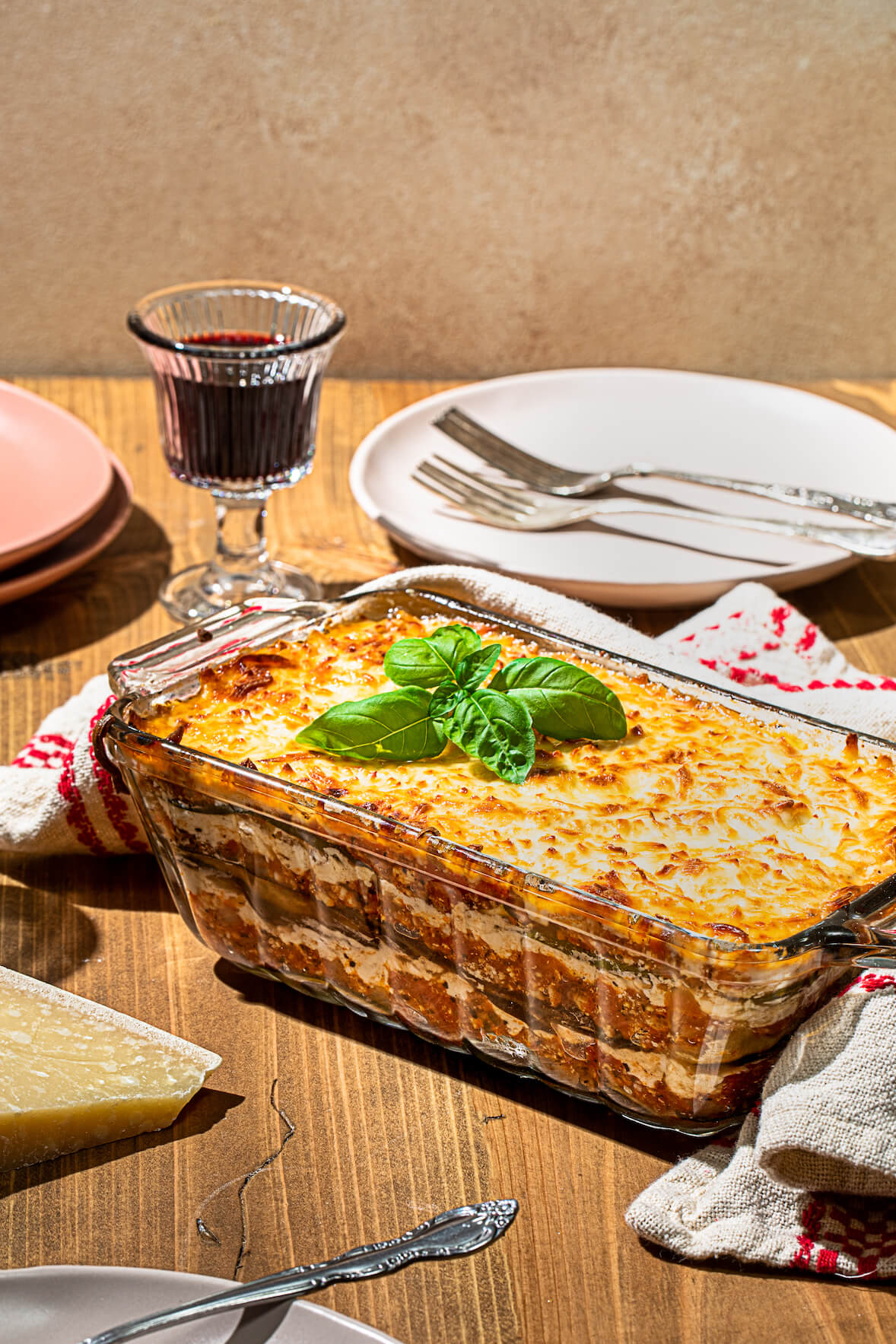 Home Recipes The best comfort food recipes Vegetarian Lasagna Close Avantages exclusifs Deviens membre BPT+ pour ajouter une recette en favori et profiter d'une foule d'autres avantages! Deviens membre BPT+ Vegetarian Lasagna Quick access Ingredients Preparation Comments Ingredients Preparation Comments By: Hubert Cormier, Ph.D., docteur en nutrition Preparation 35 min Cooking 1 h 15 Refrigeration 0 min Freezing 0 min 4 servings Piece of cake (easy) Quick access Ingredients Preparation Comments Ingredients Preparation Comments Dietary restrictions Categories Main dishes Pastas Like it? Share it! Vegetarian Lasagna Try This Delicious Tofu and Vegetable Lasagna! Here is a vegetarian lasagna recipe that won’t leave you starving! We traded the classic lasagna pastas for zucchini and eggplant slices, but you could always include one or two pasta layers in this dish if you really enjoy them. Plus, this lasagna is an excellent way to eat more vegetables. The secret behind the recipe? Roasted vegetables for more flavours! Yep, a lasagna with fresh vegetables is just as good! Enjoy! Possible additions? If you feel like it, you could add spinach or Italian tomato slices to your lasagna. A few fresh basil leaves would also be fabulous! SIMPLY DELICIOUS: Love comforting meals? Cook this Chinese macaroni, this chicken noodle soup, these oven-baked chicken thighs, these homemade nachos, or this slow cooker pulled pork! Like it? Share it! Bonà savoir Use a mandolin to make this vegetable lasagna! To cut your vegetables thin and even, the best tool you can use is a mandolin. Plus, vegetable slices are an excellent substitute to traditional lasagna pastas. This vegetarian version is a sure hit! Ingredients Switch to cook mode Metric Imperial Vegetarian lasagna Eggplant, cut lengthwise - 1 1 To discover! Zucchinis, cut lengthwise - 3 3 To discover! Olive oil - 1 tablespoon 15 mL To discover! Salt and pepper - To taste To taste To discover! Tofu, crumbled - 1 block 454 g To discover! Onion, chopped - 1 1 To discover! Garlic cloves, chopped - 3 3 To discover! Diced tomatoes - 1 can 796 mL To discover! Dried oregano - 2 tablespoons 30 mL To discover! Dried basil - 2 tablespoons 30 mL To discover! Dried parsley - 1 tablespoon 15 mL To discover! Sugar - 1 tablespoon 15 mL To discover! Cottage cheese - 500 g 500 g To discover! Mozzarella cheese, grated - 2 ½ cup 625 mL To discover! Preparation Switch to cook mode Vegetarian lasagna Step 1 Preheat the oven to 450 °F (230 °C). Line a baking sheet with a silicone baking mat or parchment paper. Step 2 Spread the eggplant and zucchini slices on the baking sheet. Drizzle olive oil on top and season with salt and pepper. Cook in the oven for 10 minutes. Reduce oven temperature to 190 °C (375 °F). Step 3 In a large skillet, over medium heat, brown the tofu a few minutes. Add the onion and garlic and cook 5 more minutes. Step 4 Incorporate the can of diced tomatoes, the herbs, and the sugar. Let simmer over low heat for 15 minutes or until the liquid nearly evaporates completely. Step 5 In a 9″ x 5″ (23 cm x 13 xm) baking dish, assemble the lasagna. Start by spreading a third of the sauce in the dish. Add half the cottage cheese on top and cover with half the eggplant and zucchini slices. Step 6 Repeat these steps to create layers until you have no more ingredients left. Cover with grated mozzarella cheese. Step 7 Cook the lasagna in the oven for 45 minutes and finishing cooking at broil for 2 minutes. Like it? Share it!