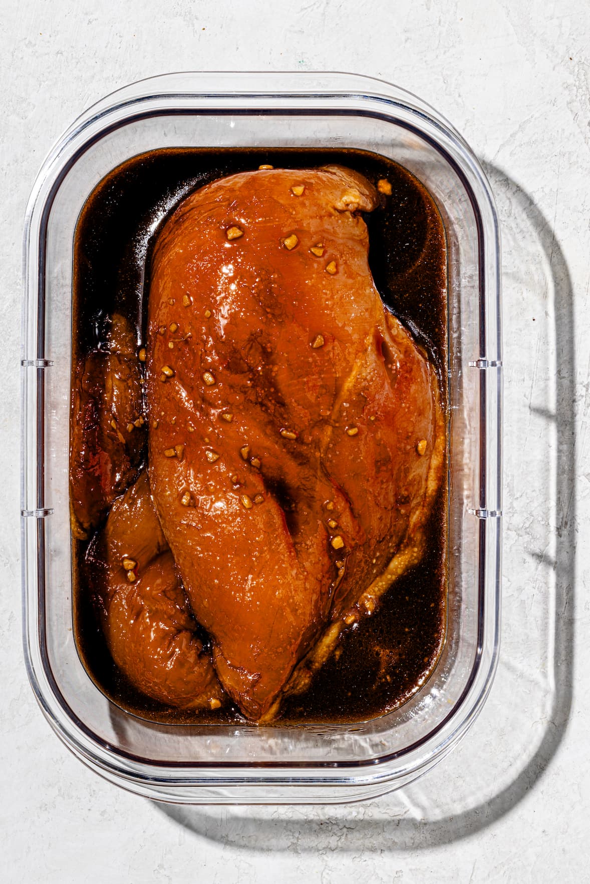 Découvre nos meilleures recettes de marinades pour poulet! Tu ne sais jamais dans quoi faire mariner ta volaille? Sache que mariner d’avance permet de rehausser les saveurs et le goût explosif de ton plat! Une délicieuse marinade originale pour brochettes de poulet, pour poitrines ou pour n’importe quelle coupe (comme les pilons de poulet, les hauts de cuisse, les lanières de poulet ou les brochettes de poulet mariné par exemple!), c’est juste trop bon pour ne pas l’essayer! Le secret d'une bonne marinade de poulet : Toutes les recettes de marinade pour le poulet présentées ont un petit je-ne-sais-quoi de tendance et de follement bon. À toi de les découvrir et de les pimper comme bon te semble selon les règles de l’art! Tu peux donc bonifier les recettes en y ajoutant d'autres ingrédients de ton choix comme des herbes aromatiques, des graines de sésame, des oignons verts Des recettes de marinade pour toutes les protéines! Ah oui, sache que les marinades estivales se prêtent aussi à merveille pour toute autre protéine comme le tofu, le porc, les crevettes (ou gambas) et autres! Également, tu peux cuire ta viande blanche (ou ta viande brune!) selon le mode de cuisson désiré. [bon-a-savoir icon="https://bonpourtoi.ca/app/uploads/2024/03/ico-poulet.svg"] BON À SAVOIR QUAND ON PRÉPARE DE LA VIANDE Prends l'habitude de mariner ta protéine la veille pour sauver du temps le jour venu! Pour plus d'informations, consulte l'article Comment faire une bonne marinade? [/bon-a-savoir] Marinade rapide pour poulet! Une belle astuce pour mariner les poitrines de poulet (ou les cuisses de poulet!) en moins de 30 minutes (cuisson incluse) est d’utiliser la technique du sous vide. Du côté des accessoires, une pompe à vide et des sacs réutilisables sont des outils indispensables. Cette technique permet de retirer l’air des sacs. De ce fait, il y a moins de pression à l’extérieur de ton aliment mis sous vide qu’à l’intérieur, donc la marinade parfumée peut être absorbée plus facilement. Le but derrière cette technique est que la marinade liquide détende le tissu conjonctif de la viande, la volaille ou le poisson tout en les rendant plus souples. BPT a un coup de coeur pour la pompe sous-vide Fresh & Save de la marque Zwilling. Sinon, tu peux toujours mariner tes protéines dans un sac hermétique, un plat avec couvercle, un plat hermétique, un plat Pyrex ou un sac pour la congélation. Toutefois, même si tu es pressé, ne laisser mariner un poulet que 20 minutes pourrait très bien fonctionner et ta volaille sera savoureuse.