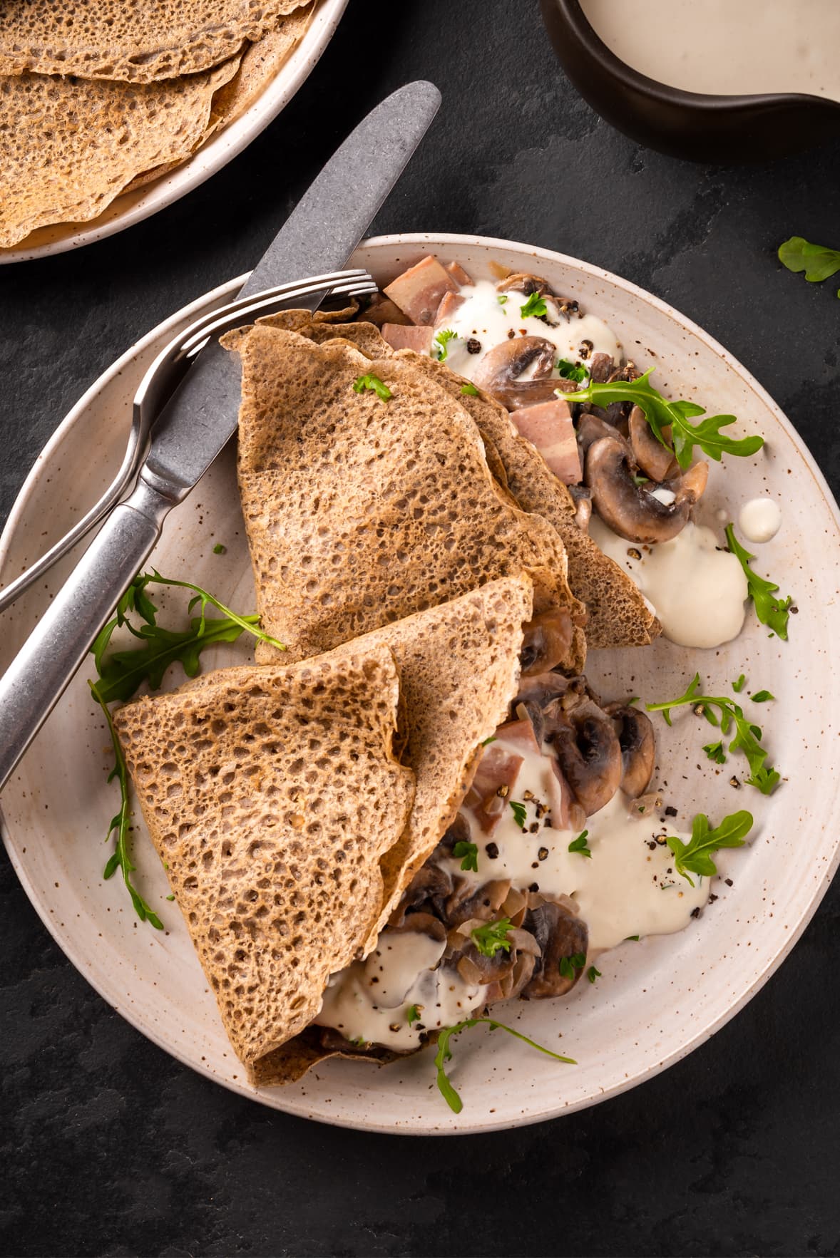 Les recettes de crêpes maison, la tradition de la fin de semaine! Les recettes de crêpes sont populaires, polyvalentes et peuvent être dégustées à tout moment de la journée. Effectivement, qu'elles soient servies au déjeuner, au dîner, au souper ou même comme dessert, les crêpes peuvent être préparées de nombreuses façons différentes. En effet, elles peuvent être sucrées ou salées, épaisses ou minces, moelleuses ou croustillantes, et leurs garnitures peuvent varier du classique mélange de fruits, de cassonade et de sirop d'érable à la sauce béchamel au fromage et aux champignons. Il y en a pour tous les goûts! Que tu aimes les recettes de crêpes simples et traditionnelles ou que tu préfères les cuisiner avec des ingrédients plus recherchés, cet article t'offre une variété de recettes pour satisfaire toutes tes envies de crêpes chaudes! Aussi, que tu sois débutant en cuisine ou chef expérimenté, ces recettes t'offriront une expérience culinaire unique et savoureuse. Tout ce qu'il te faut, c'est une poêle antiadhésive et quelques ingrédients de base comme de la farine blanche ou de la farine de blé, des oeufs, du lait de vache (ou une boisson végétale), du sucre et de l'huile végétale. [separation] BON À SAVOIR : Tu adores les recettes maison qui te font économiser? Découvre alors les articles comment économiser sur l'épicerie, comment économiser lors de la préparation de tes lunchs, comment bien manger à petit prix, et faire ton épicerie pour pas cher! [separation]