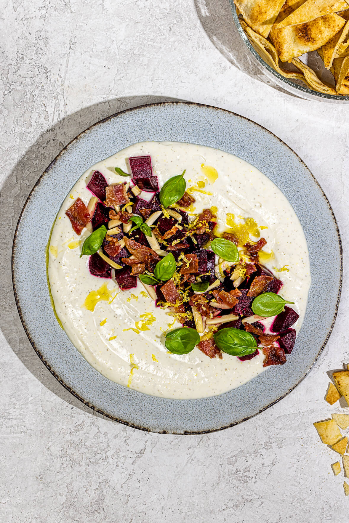 Les trempettes sont les reines de l’apéro! Rafraîchissantes, sers-les avec une foule de légumes ou même avec tes craquelins préférés. Dans le cas de cette trempette de féta fouetté, BPT a décidé de la servir avec des craquelins faits maison à partir de pains pitas un peu moins frais.