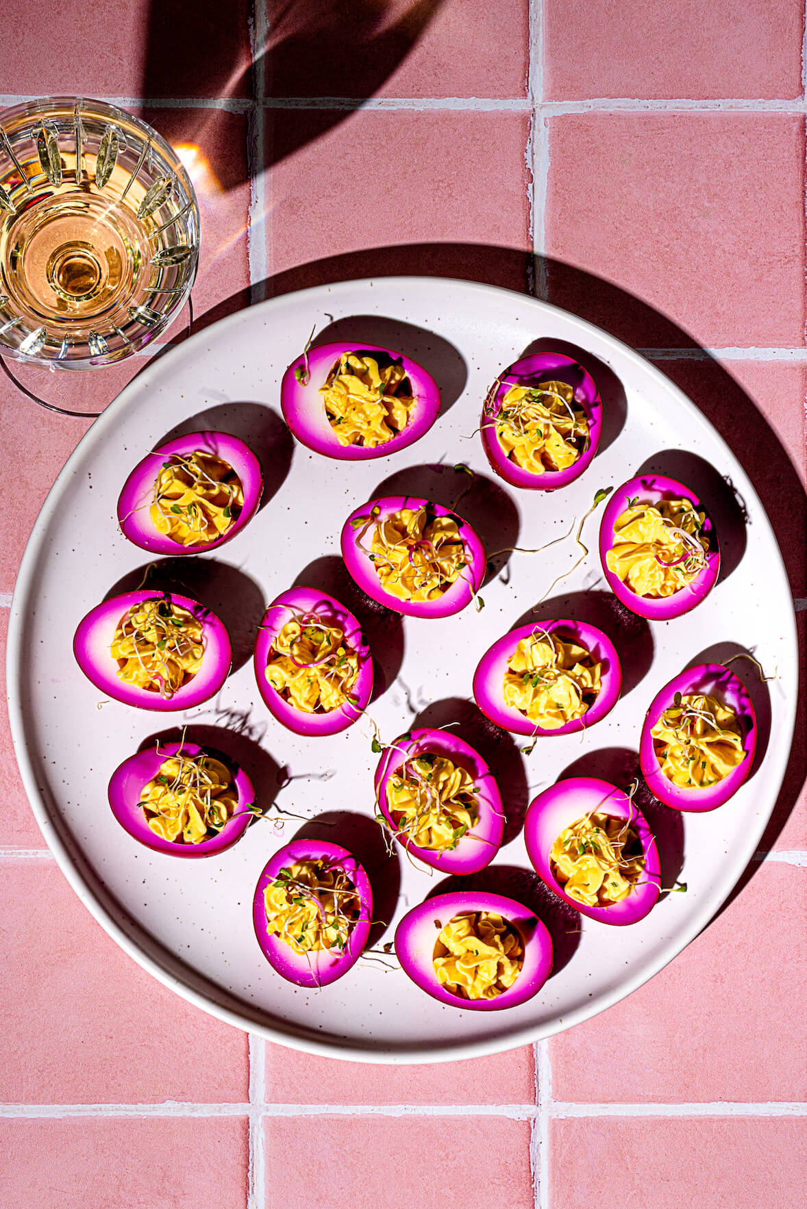 Les oeufs mimosa roses, c’est un choix classique et c’est vraiment bon et trop mignon! En plus, le jus de betteraves ajoute un petit goût sucré à la recette tout en étant responsable de la belle teinte rosée des oeufs! C’est vraiment la recette parfaite pour amuser les enfants et pour épater les plus grands!