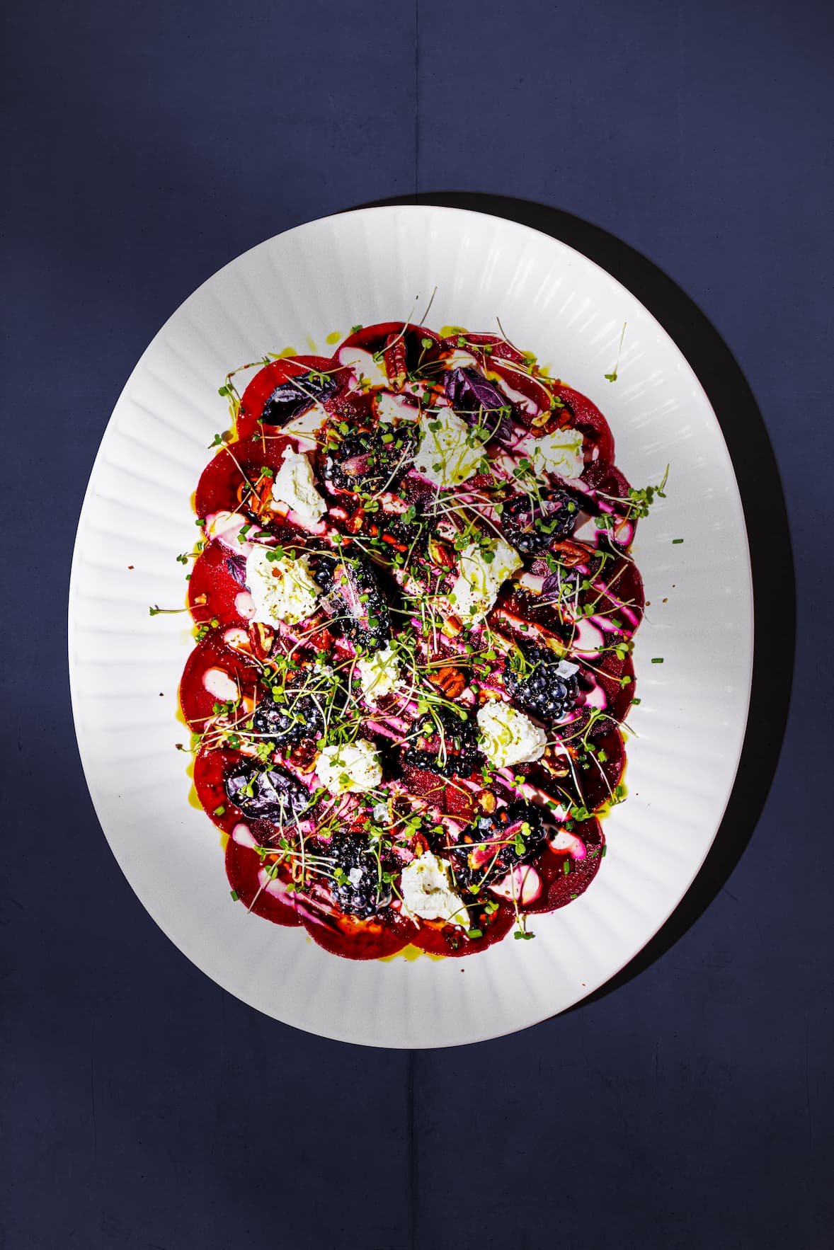 Le carpaccio de betteraves est une œuvre d’art culinaire qui transforme les betteraves rouges ou jaunes en une entrée élégante et raffinée. Les jolies betteraves sont soigneusement coupées en tranches presque translucides, révélant ainsi les magnifiques teintes de rouge et de rose du légume.