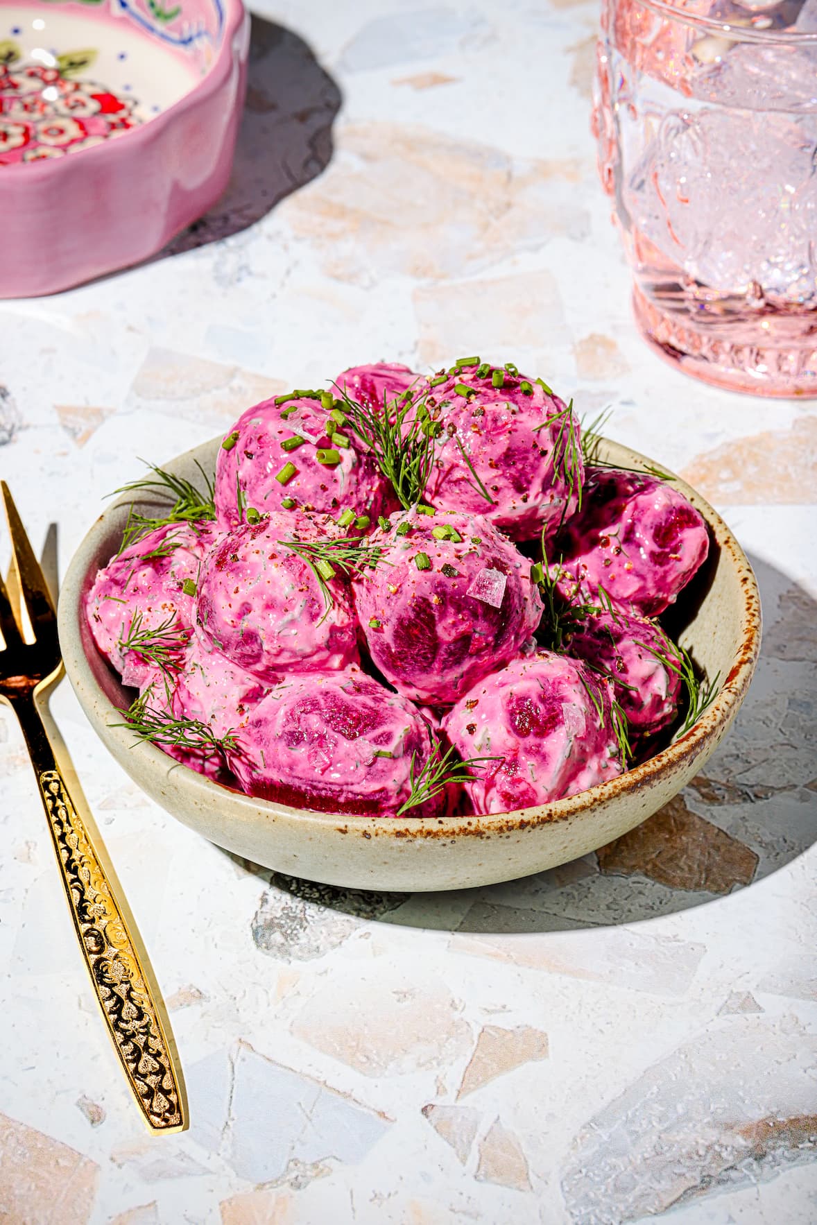 La salade crémeuse avec betteraves marinées est un accompagnement frais et coloré qui allie la douceur des betteraves marinées à une vinaigrette crémeuse aux saveurs distinguées pour créer une combinaison de goûts délicieux et d’une texture agréable.