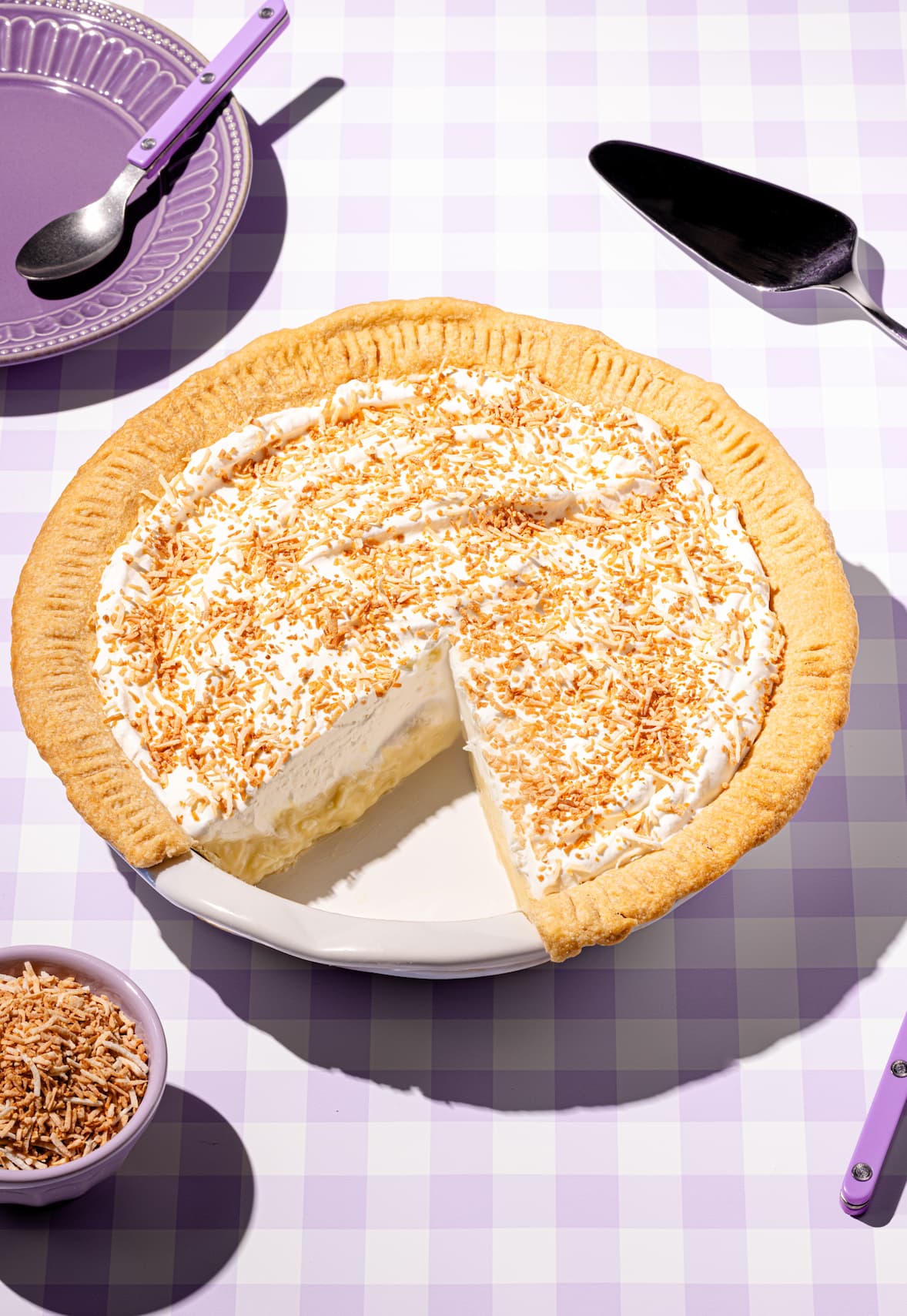 Accueil Recettes Tartes Tarte à la crème à la noix de coco Close Avantages exclusifs Deviens membre BPT+ pour ajouter une recette en favori et profiter d'une foule d'autres avantages! Deviens membre BPT+ Tarte à la crème à la noix de coco Accès rapides Ingrédients Préparation Commentaires Ingrédients Préparation Commentaires Par : Pamela Rousseau, Dt.P., Nutritionniste Préparation 40 min Cuisson 30 min Réfrigération 4h30 Congélation 0 min 8 portions Tu auras besoin d’un peu de doigté! (intermédiaire) Accès rapides Ingrédients Préparation Commentaires Ingrédients Préparation Commentaires Restrictions alimentaires Sans arachides Sans noix Végétarien Catégories Desserts Tartes Tu aimes? Tu partages! Tarte à la crème à la noix de coco Offre la meilleure recette de tarte à la crème à la noix de coco à tes proches! La tarte à la crème à la noix de coco est un dessert riche et onctueux qui se compose d’une excellente pâte à tarte maison garnie d’une crème douce et veloutée à la noix de coco et de crème fouettée. Cette magnifique crème à la noix de coco est préparée à base d’ingrédients comme le sucre, la fécule de maïs, les jaunes d’oeufs, le lait et le lait de coco. La préparation est cuite doucement afin de l’épaissir et est ensuite refroidie afin de la solidifier. Une tarte à la noix de coco complètement savoureuse! Dans cette recette, le goût de noix de coco est surtout présent dans le mélange de crème onctueux. Également, de la noix de coco râpée et grillée est ajoutée sur le dessus du dessert afin d’offrir une texture croquante et une saveur exotique supplémentaire à chaque bouchée. Si tu préfères un goût de noix de coco encore plus intense, il est possible de remplacer l’extrait de vanille par de l’extrait de noix de coco artificiel. BON DANS LA BOUCHE : Tu es amoureux fou des tartes maison? Voici donc de nouvelles découvertes gourmandes! Tarte aux Mini Eggs Tarte au citron meringuée Tarte aux pacanes à l’ancienne Tarte au sucre (avec lait Carnation) Tarte aux fraises et au yogourt sans cuisson Tu aimes? Tu partages! Bonà savoir Utilise un moule à tarte profond pour cette recette traditionnelle! Pour cette recette de tarte à la noix de coco maison, utilise une assiette à tarte profonde. Ainsi, tu auras suffisamment d’espace pour ta crème de noix de coco et ta garniture fouettée. En plus, un moule à tarte profond te permet de concocter une tarte décadente volumineuse de qualité supérieure pouvant servir environ 8 personnes. Tarte à la crème à la noix de coco Passer en mode cuisine Métrique Impérial Pâte brisée Farine tout usage - 1 tasse (130 g) 250 ml (130 g) À découvrir! Sel - ¼ c. à thé 1,25 ml À découvrir! Beurre non salé froid en dés - ½ tasse 125 ml À découvrir! Eau glacée - 2 c. à soupe 30 ml À découvrir! Crème à la noix de coco Sucre - ⅔ tasse 160 ml À découvrir! Fécule de maïs - ¼ tasse 60 ml À découvrir! Jaunes d’oeufs - 4 jaunes 4 jaunes À découvrir! Lait de coco - 1 conserve de 400 ml 1 conserve de 400 ml À découvrir! Lait - 1 tasse 250 ml À découvrir! Noix de coco râpée et sucrée - 1 tasse 250 ml À découvrir! Extrait de vanille - 2 c. à thé 10 ml À découvrir! Sel - ¼ c. à thé 1,25 ml À découvrir! Beurre non salé tempéré en cubes - 2 c. à soupe 30 ml À découvrir! Garniture fouettée Noix de coco râpée et sucrée - 3 c. à soupe 45 ml À découvrir! Crème à fouetter 35 % M. G. - 1 ½ tasse 375 ml À découvrir! Sucre à glacer - 2 c. à soupe 30 ml À découvrir! Extrait de vanille - ½ c. à thé 2,5 ml À découvrir! Préparation Passer en mode cuisine Pâte brisée Étape 1 Au robot culinaire, mélanger la farine et le sel en pulsant à quelques reprises. Ensuite, ajouter le beurre froid et pulser quelques secondes à la fois jusqu’à ce que les morceaux de beurre aient la taille de petits pois. Étape 2 Ajouter l’eau au récipient et pulser de nouveau jusqu’à ce que la pâte commence à se former. Ajouter un peu d’eau si nécessaire. Sortir la pâte du robot et former un disque de pâte. Étape 3 Sur un plan de travail fariné, avec un rouleau à pâte, abaisser la pâte à une épaisseur de 3 à 4 mm (1/8 po). Étape 4 Foncer un moule à tarte en verre profond de 23 cm (9 po) de diamètre et retirer l’excédent de pâte sur le pourtour du moule en la laissant dépasser légèrement. Festonner la bordure avec les doigts et réfrigérer 30 minutes. Étape 5 Préchauffer le four à 375 °F (190 °C). Avec une fourchette, piquer le fond de tarte. Couvrir le fond de tarte de papier d’aluminium et déposer des pois secs ou des billes de cuisson sur le dessus du papier d’aluminium. Étape 6 Cuire le fond de tarte au four 15 minutes. Retirer le papier d’aluminium et les pois et poursuivre la cuisson 10 minutes ou jusqu’à ce que la croûte de tarte cuite soit légèrement dorée. Laisser refroidir complètement à température ambiante. Crème à la noix de coco Étape 7 Dans une moyenne casserole, hors du feu, mélanger le sucre avec la fécule de maïs. Au fouet, mélanger les jaunes d’oeufs à la préparation de sucre jusqu’à l’atteinte d’un mélange homogène. Étape 8 Incorporer le lait de coco, le lait, la noix de coco, l’extrait de vanille et le sel. À feu moyen, en remuant constamment, porter à ébullition. Laisser mijoter le mélange de lait chaud 2 minutes ou jusqu’à ce que la préparation épaississe à une consistance de pouding. Retirer du feu et incorporer le beurre. Étape 9 Verser la préparation de crème à la noix de coco dans la croûte à tarte refroidie. Couvrir la surface de la crème à la noix de coco de pellicule plastique. Réfrigérer au moins 4 heures ou jusqu’à ce que la préparation soit complètement refroidie. Garniture fouettée Étape 10 Dans une petite poêle, griller la noix de coco 2 minutes ou jusqu’à ce qu’elle soit bien dorée. Lai