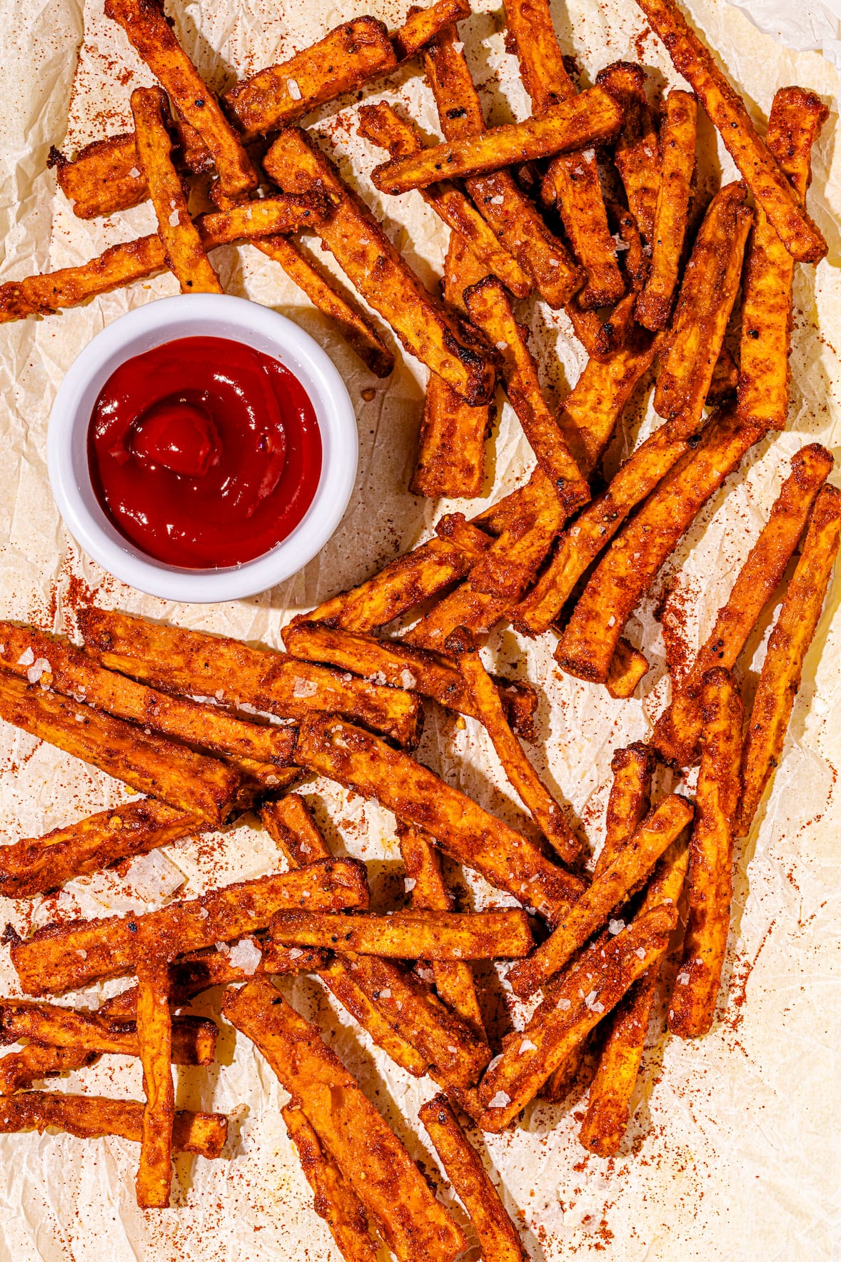 Les meilleures recettes de frites : le délice du casse-croûte à la maison! Les meilleures recettes de frites se glissent parfaitement dans toutes sortes de menus, que ce soit pour accompagner un burger, un steak, des côtes levées ou même un poisson pané. Et pour les amateurs de tartare, les frites au poivre apportent une touche gourmande qui élève le plat à un tout autre niveau. Rien de meilleur que de croquer dans une frite maison, bien dorée et croustillante! L’avantage avec les frites maison, c’est qu’il y en a pour tous les goûts et toutes les occasions! Tu peux les personnaliser à volonté, que ce soit avec une mayonnaise classique ou une version plus audacieuse : épicée, au pesto ou au miel et au cari. Et si l’idée d’une poutine te fait saliver, tu es au bon endroit pour trouver la parfaite recette de frites! Des frites maison faciles à faire pour tous! Tu crois qu’il te faut une friteuse pour faire des frites parfaites ? Détrompe-toi! Avec un four ou une friteuse à air chaud, tu peux obtenir des frites tout aussi croustillantes et savoureuses. En plus, ce type de cuisson requiert moins de matières grasses. Or, préparer des frites au four ou au air fryer est non seulement plus sain, mais aussi très pratique! Dans cet article, BPT a rassemblé les meilleures recettes de frites que tu peux facilement préparer à la maison pour te régaler. Enfile alors ton tablier et découvre les délices que tu peux faire en peu de temps avec quelques ingrédients de base! [bon-a-savoir icon="https://bonpourtoi.ca/app/uploads/2024/11/SWIITCH-Plaisir-Frites-Mcdo.svg"] POUR LES FRITES MAISON Les frites maison sont idéales pour cuisiner une poutine! Découvre alors les meilleures recettes de poutines maison! [/bon-a-savoir]